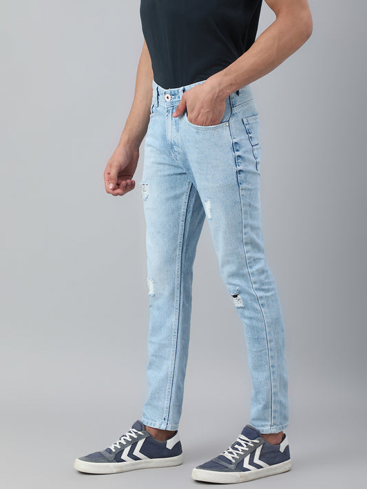 Blue Straight Fit Highly Distressed Heavy Fade Jeans
