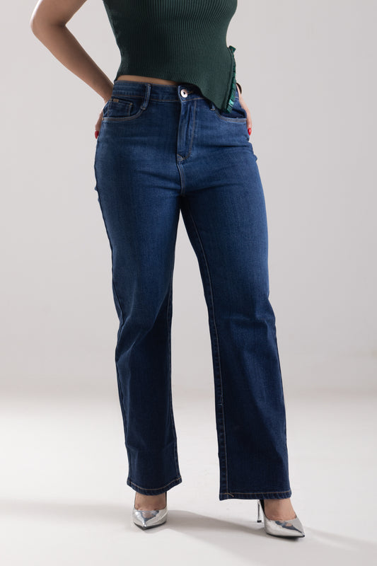 Blue Wide-Leg Cargo Jeans with Pocket Details
