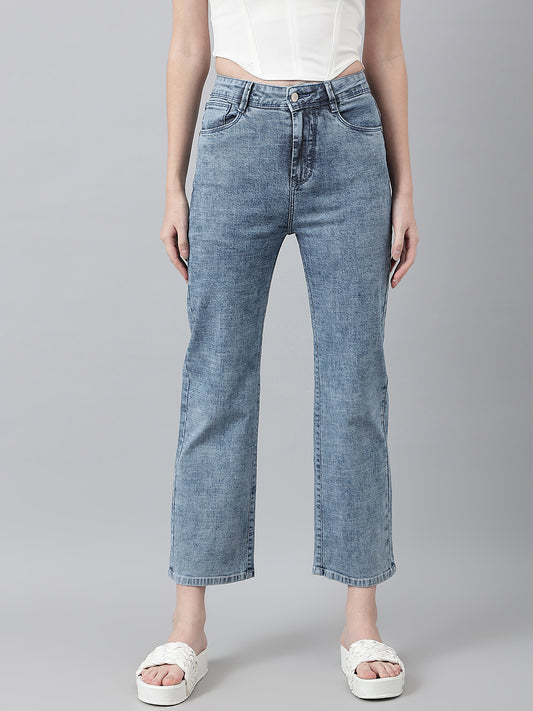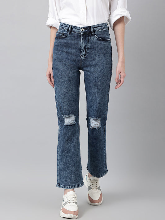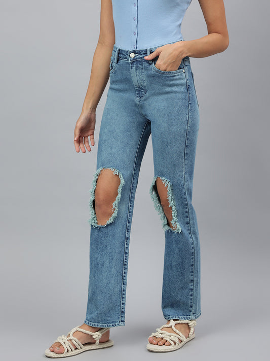 Blue Straight Fit Highly Distressed Heavy Fade Jeans