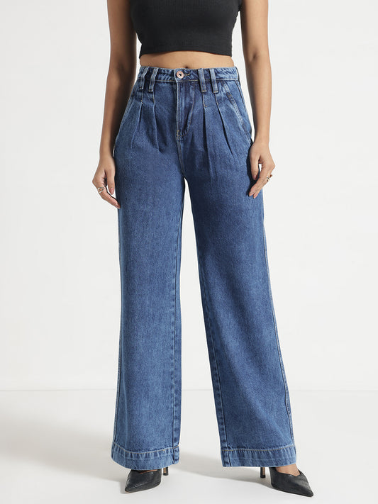 Sold outShaded Blue Loose-Fit Wide-Leg Jeans