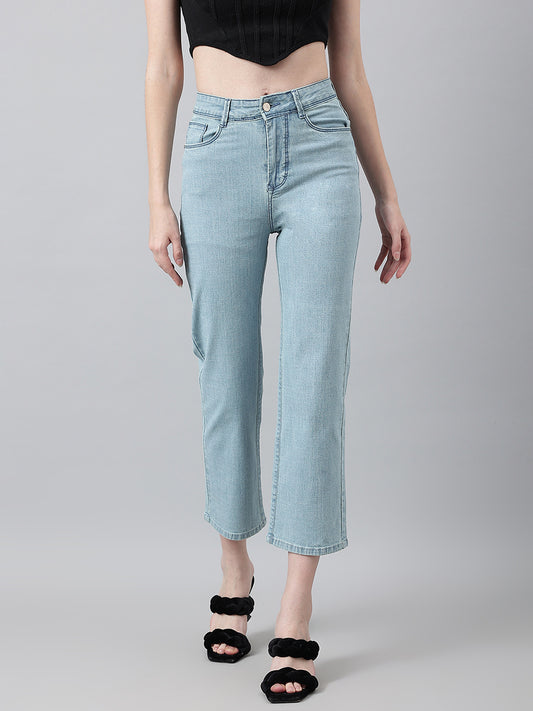 Light Blue Wide-Leg Cargo Jeans with Pocket Details