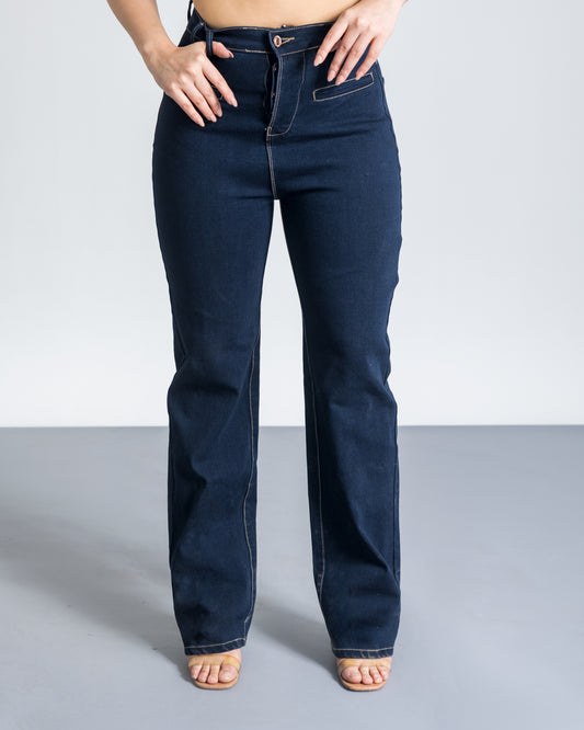 Dark Blue Loose-Fit Jeans with Pocket Detailing